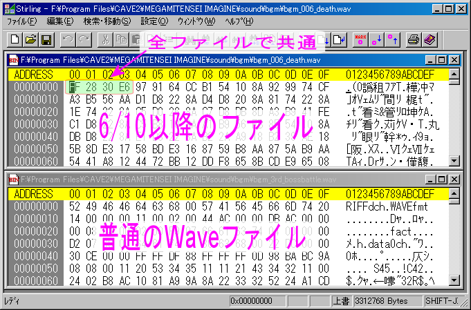 - Waveファイルの先頭は RIFF 、 WAVEfmt などの固定データなのに新bgmはファイルによって違う